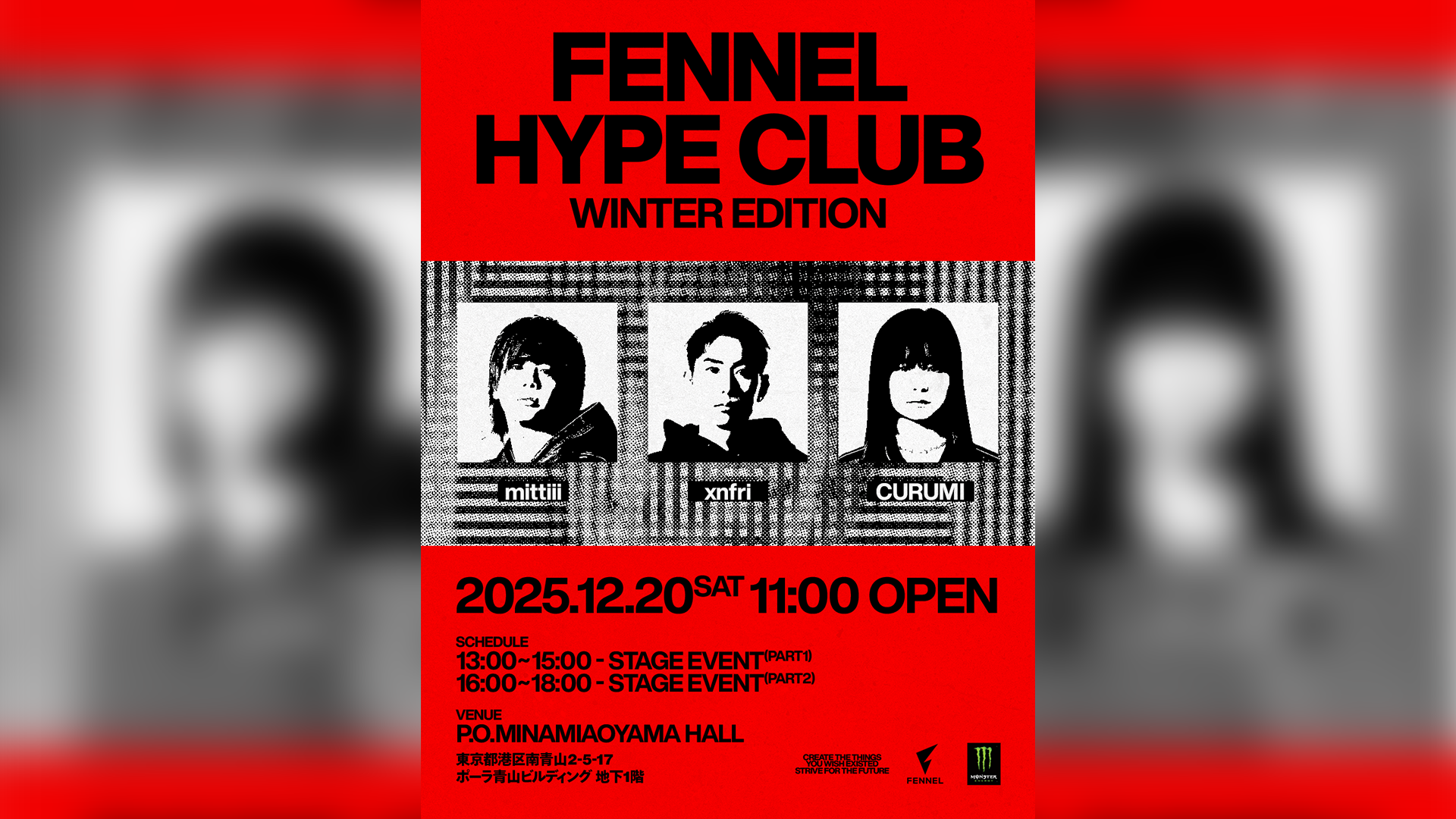 「FENNEL HYPE CLUB WINTER EDITION」はストリーマーの mittiii / xnfri / CURUMI が登場し、ここでしか聞けないトークやQ&Aなど、オフライン限定のコンテンツを詰め込んだ一日限りのファンミーティングです。